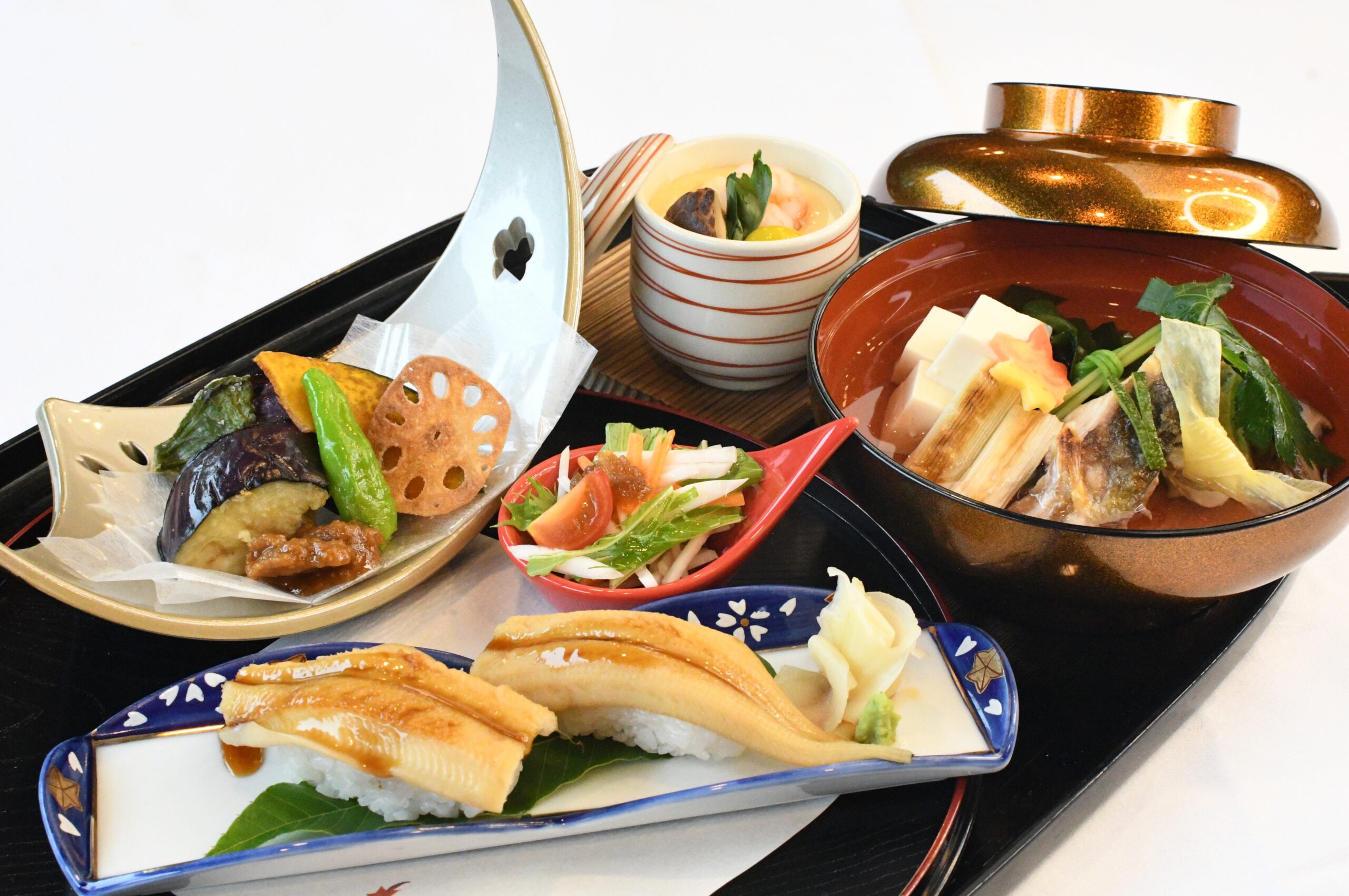 特製煮穴子の握り寿司と潮汁のセットをお楽しみください