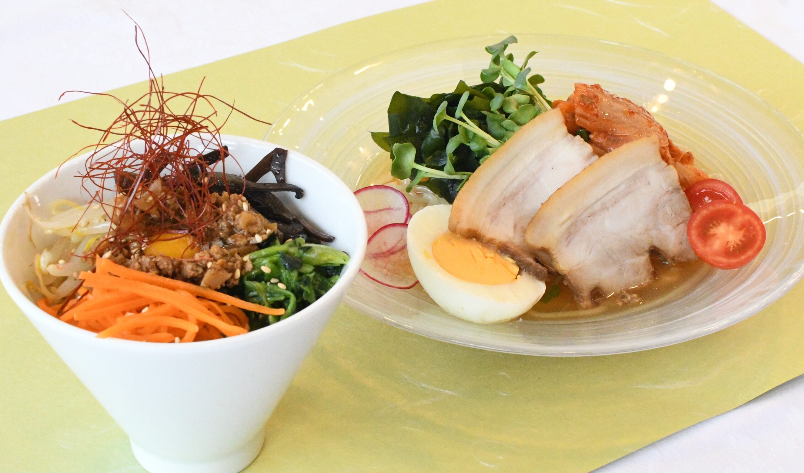 具材たっぷりピリ辛ミニビビン丼と韓国冷麺のセットです
