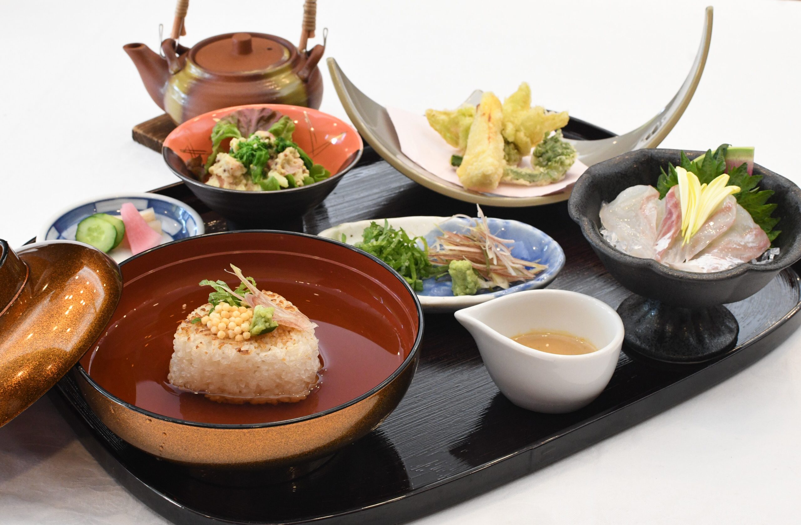 特製出汁をかけ、春のお茶漬けをお楽しみください。